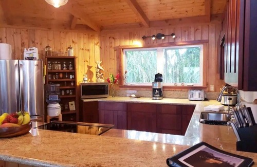Bonsai Bungalow is a Custom Built Home with Japanese Flair! It sits located on 1/4 Acre of land with easy access to the most sought after Destinations here on the Big Island..from Waterfalls to Volcanos there's plenty to see and do! Famous Maku'u Farmers Market is just 5 minutes away. Black Sand Beach created from the Recent Lava Flow is a short drive away! Coffee and Fresh Local Fruit upon your Arrival. Make Bonsai Bungalow your home in Paradise while you stay and explore the Beauty of Hawaii!