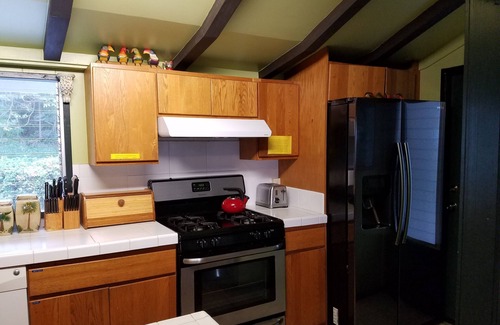 The kitchen is well equipped with all your needs. Love a gas stove, dishwasher, double door refrigerator, toaster, blender, microwave, crock pot, rice cooker, coffee maker, and coffee grinder. Outside is a gas BBQ.