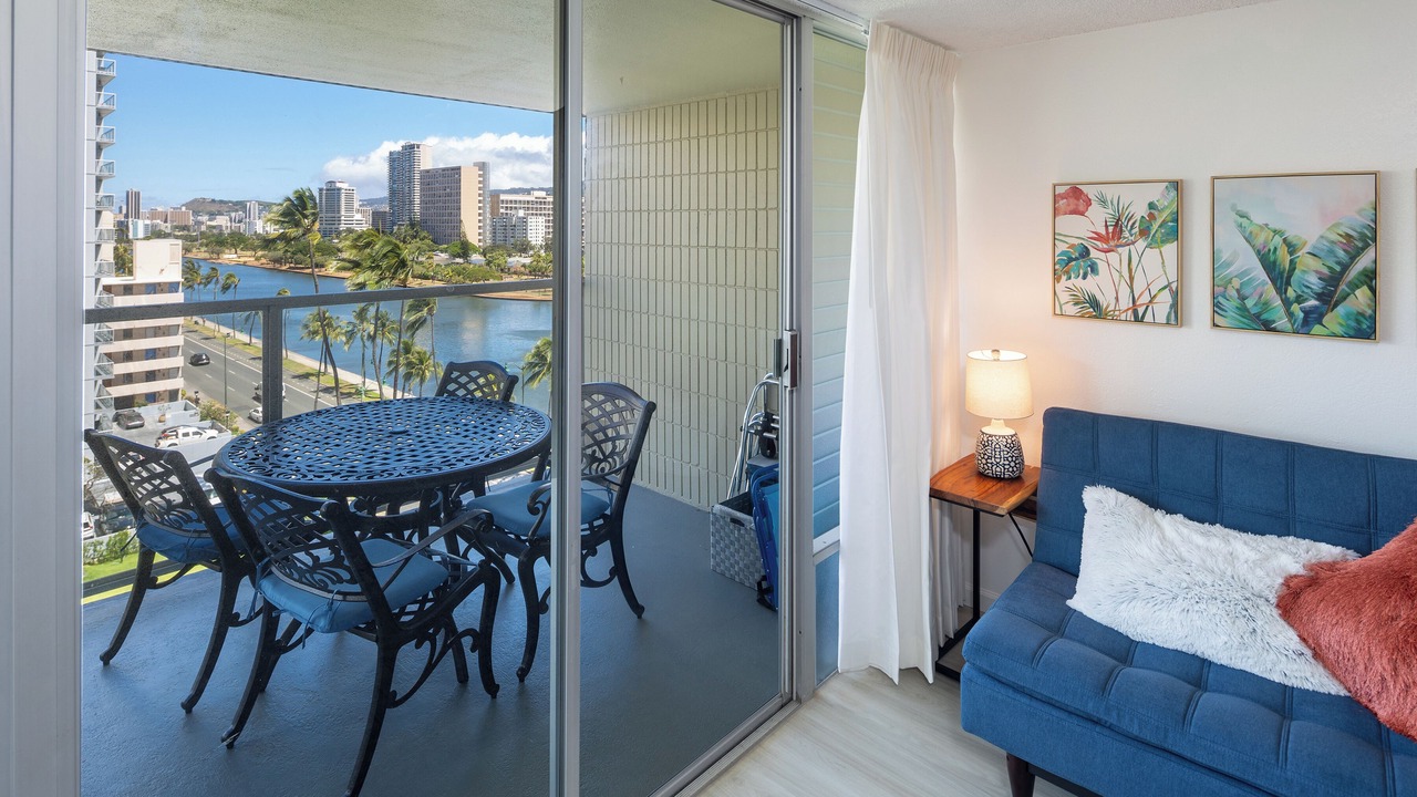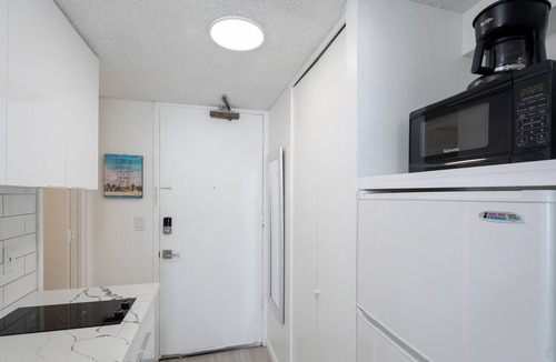Also provided is a 50" HD TV with premium cable channels and wi-fi. The many floor to ceiling windows provide the perfect flow of refreshing island air, but if you prefer it cooler, air conditioning is available. Kitchen appliances include full size refrigerator, stove, oven, garbage disposal, Keurig coffee machine, toaster, microwave, rice cooker and all the cookware necessary to make a gourmet meal. Enjoy dinner on the lanai overlooking beautiful Waikiki.