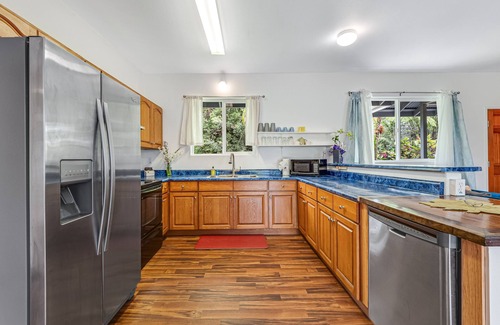 Conveniently located just 26 blocks from the ocean, this snowbird-friendly home offers the perfect home base for a relaxing and unforgettable vacation with your family and friends! If you are an outdoors enthusiast, you will find fantastic attractions nearby, including Mini Wonderland - Hawaiian Paradise Park, Awapuhi Labyrinth, Makuʻu Point, Paradise Cliffs, Hawaiian Beaches Park, Shipman Beach / Haena Beach, and so much more. There are several farmer's markets and convenience stores nearby as well.