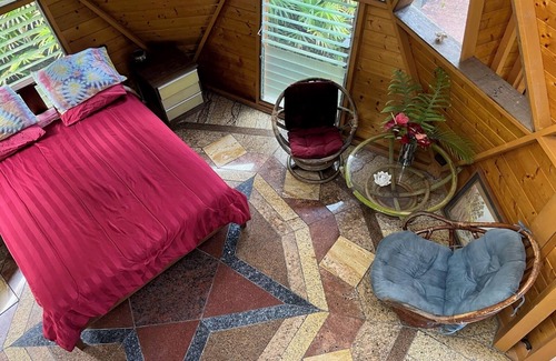 Solar powered bohemian loft cottage with birds, lizards, and frogs is located in Orchidlands Estates. Solar powered bohemian loft cottage with birds, lizards, and frogs provides accommodation, featuring Pet Friendly, Security/Safety, Bedding/Linens, among other amenities. This Cottage features Pet Friendly, Security/Safety, Bedding/Linens, to make your stay a comfortable one.