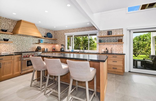 This luxurious modern Hawaiian compound features two newly renovated, pristine homes — an ideal retreat for large families, extended group vacations, or friends traveling together. Nestled within the prestigious guard‑gated community of Kona Bay Estates, the property offers both privacy and proximity to one of the Big Island’s most beloved local treasures, Keiki Beach. Here, natural lava rock and coral reef form a calm, sandy‑bottom lagoon with glistening turquoise waters, vibrant tropical fish, and graceful resident sea turtles.