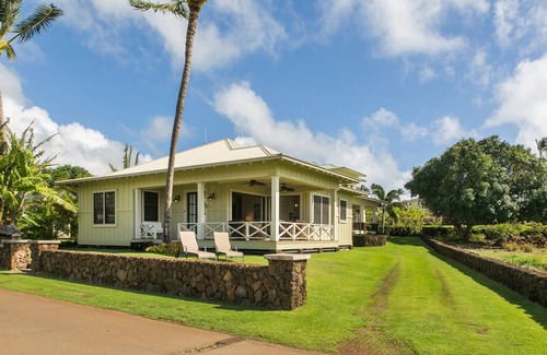 This custom designed Hawaiian plantation style cottage is located just off the Brennecke's beach side of Poipu Beach Park, 100 steps to the beach!