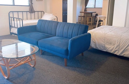 Very private lower level 1 bed room with full kitchen, own washer/dryer and street parking. No worries about parking. it's plenty of street parking. one queen size bed and two twin beds. One sofa bed and tv with free WiFi. Conveniently located near all major freeways and close to airport and Waikiki. This property is part of a house. It is the downstairs with its own entrance. Enjoy Hawaii without the hassle.